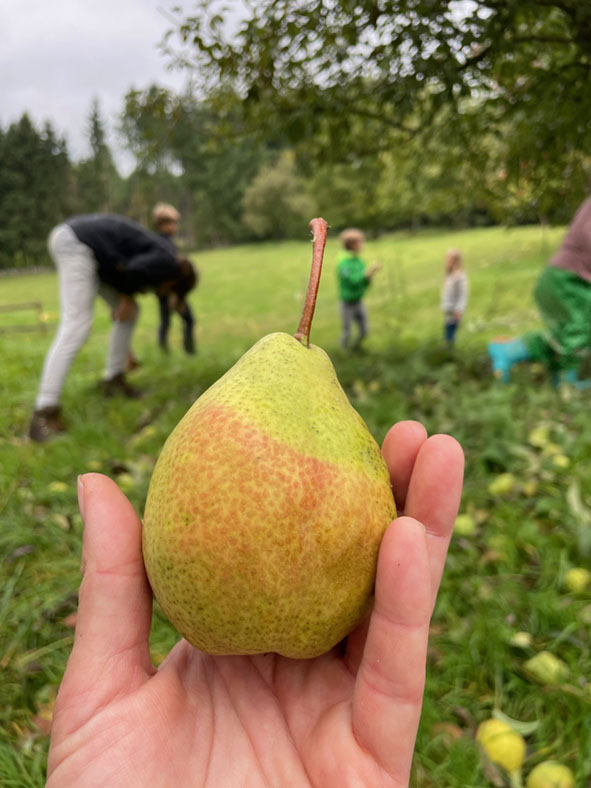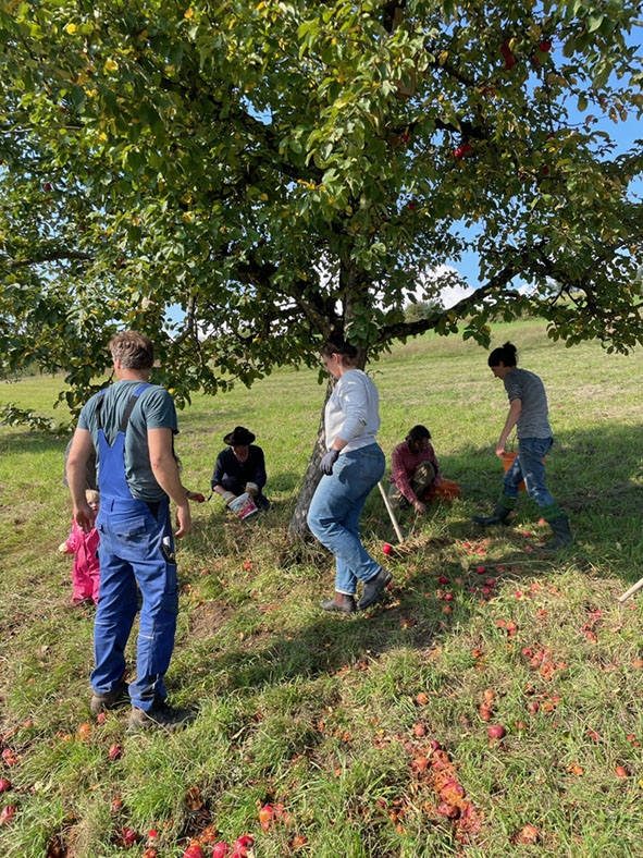 Ein großer Dank gilt allen Familien, die ihre Streuobstwiesen für die Aktion vorbereitet und zur Verfügung gestellt hatten: der Familie Heumader in Schönberg, Gerd Bangert in Stunzberg, der Familie Kreppold vom Biolandhof in Wilpersberg sowie der solidarischen Landwirtschaft Blumenthal mit ihren eigenen Beständen.