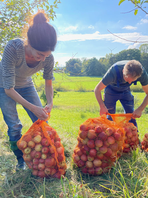 „Und ein großes Entschuldigung an die Privatgärtner, die am Nachmittag mit ihrem Obst auf den Hof der Mahls kamen und eigentlich im Anschluss an uns hätten pressen wollen – und dann unverrichteter Dinge wieder nach Hause fahren mussten.“
