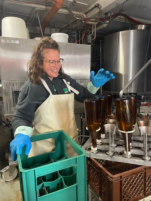 In zwei Nachmittagen wurden dort rund 500 Flaschen gereinigt. Jede einzelne musste von Hand in den Korb der Spülmaschine gesteckt, wieder entnommen, nachgespült, kontrolliert und einsortiert werden. Als wäre das nicht genug, fiel kurz vor der geplanten Aktion auch noch die Flaschenspülmaschine aus.