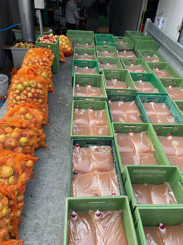 Um 18:30 Uhr war schließlich alles Obst verarbeitet. Die Hänger waren leer – stattdessen gefüllt mit Bags und Kisten voller frischem Obstwiesensaft.